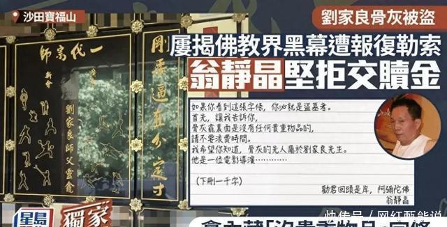 就连翁静晶早早就放进去的防盗字条——“此处无贵重物品,请勿盗取”,也被一并偷走了。 更让人没法容忍的是,同一时间被盗的,还有至少三位名人富豪的骨灰。有家属已经接到了勒索电话,最高的赎金要到了几千万港元。 匪徒很快就盯上了翁静晶。他们发了张骨灰盒的照片过来,直接要6000万港元赎金。还威胁说:“不付钱,就把骨灰扬了。” 面对这种威胁,翁静晶一点没含糊,她公开说:“一毛钱都不会给。”